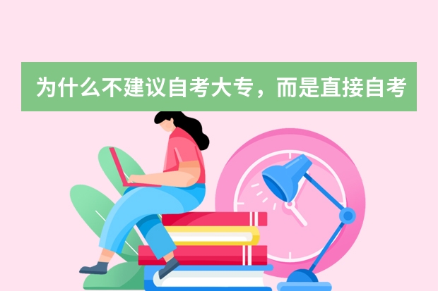 为什么不建议自考大专,而是直接自考本科? 许多初中和高中学历的学生想着先报一个自考大专,先拿大专文凭,有机会再考本科。但是,小编并不建议自考大专,建议朋友们可以直接报考自考本科! 专本套读的优势 目前,专本套读已成为报名学生最多的模式,具备读研、考公务员、升职、评职称、找工作等资格。 1、学制短。 从正常高中升本科需要5年甚至更长时间,且只能拿到本科文凭。而专本套读可