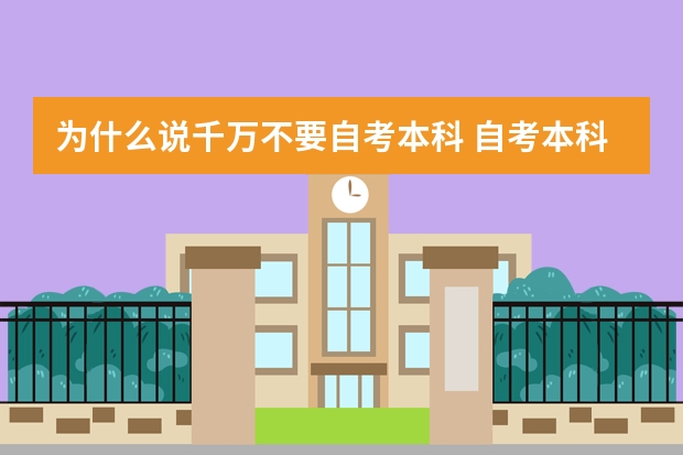 为什么说千万不要自考本科? 学历提升是一个老生常谈的话题,因为学历的提升与人的发展是有相关性的,寻求发展是人活着的重要意义之一。自考是成人学历提升的一种模式,因为报名条件宽松、学习高度自主,适用了部分考生的需求。 但是,网络上对自考的争议是一直存在的,例如:自考就是骗局,后悔读了两年;自考学历没有丝毫含金量,本科毕业证找工作都被拒,千万不要自考本科等。 那么,为什么说千万
